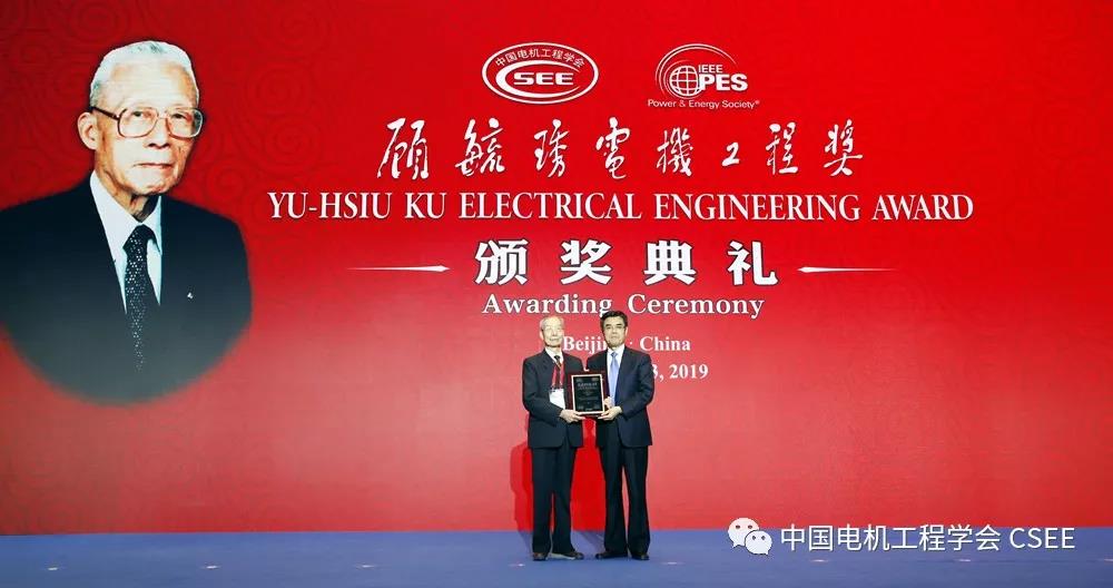 舒印彪为2019年“顾毓琇电机工程奖”获得者葛耀中颁奖