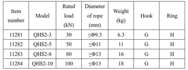 hoisting point type : hook style G), round eye style (H)