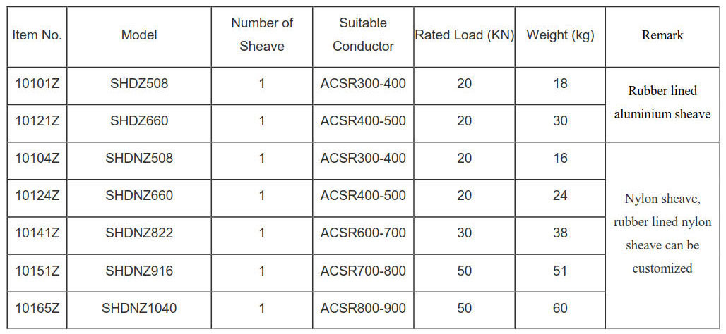 can pass through the groove. The sheaves are made of aluminum alloy or high