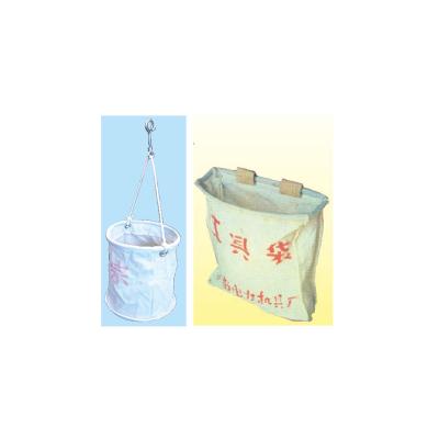 to hoist or store bolts ,etc in aerial operation .the ring stitched on top retains opening for access ,there is a pad in the bottom of the bucket .