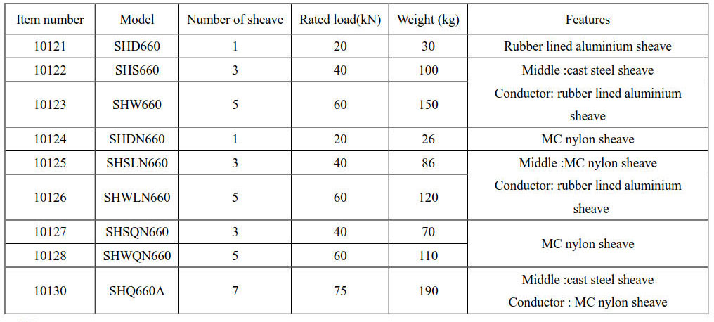 Block dimension ( outside diameter× root diameter × sheave width) Φ660×Φ560×100(mm)