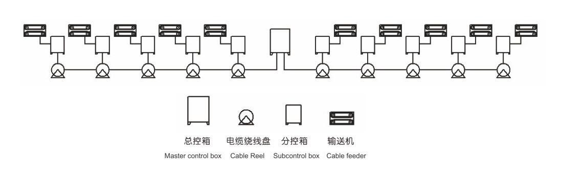 Each cable feeder including a cable reel and sub-control box,the cable reel can packaging 70m cable.